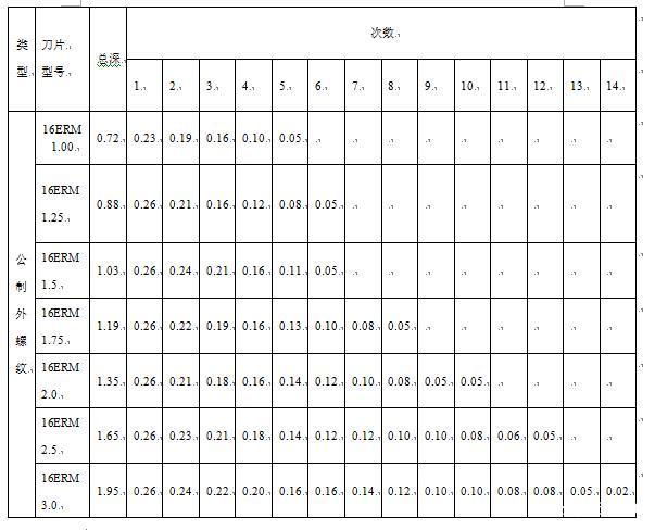 另外還有一個(gè)表格關(guān)于螺紋的牙深的就是總切削深度,加工螺紋時(shí),牙型不可能一刀車(chē)削完成,往往需要分好幾次切削,總的分配原則是,切削深度由大到小,可以根據(jù)下表