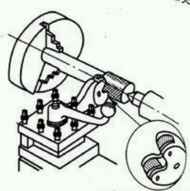 滾花是用滾花刀將工件表面滾壓出直紋或網(wǎng)紋的方法稱為滾花。本文想采用螺紋刀在數(shù)控車床上完成網(wǎng)紋狀滾花的加工,加工的思路就是多線(多頭)螺紋+左右旋螺紋加工!